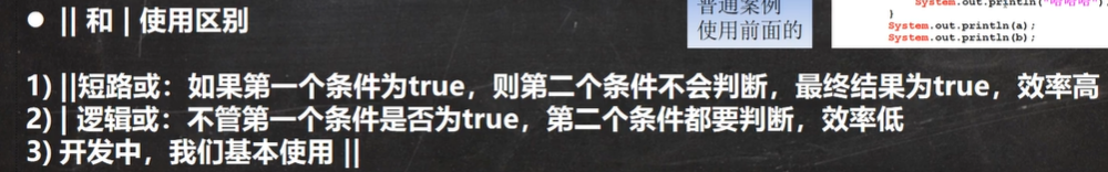 - &&短路与: 如果第一个条件为false, 则第二个条件不会判断,最终结果为false, 效率高.